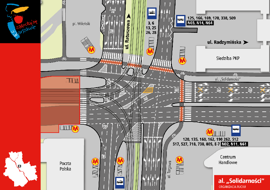 Ponadto linia 190 zostanie skierowana na objazd w rejonie skrzyżowania Targowej i Al. Solidarności (patrz informacja poniżej)