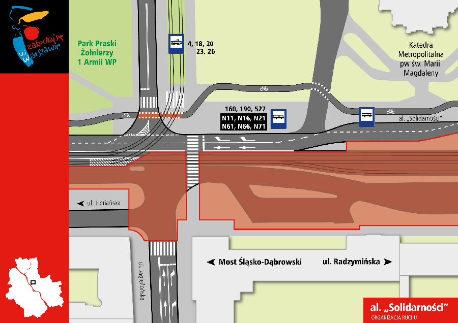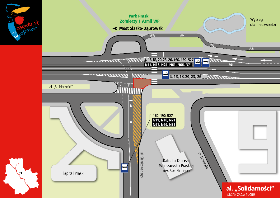 Informujemy również o utrudnieniach jakie będą występować w Warszawie w rejonie ulic Al. Solidarności i Targowej.
