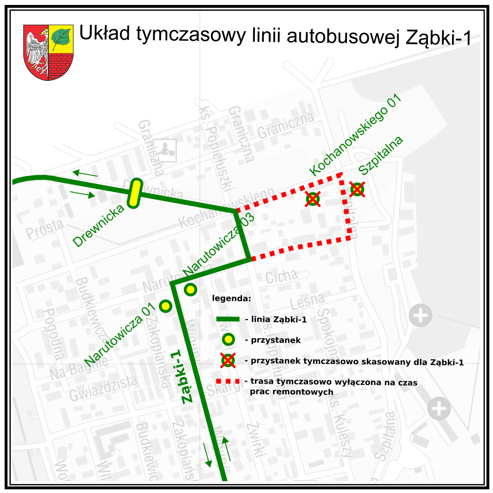 „Kochanowskiego 01” oraz „Szpitalna 01”. Autobusy linii „Ząbki-1” zamiast ulicami Kochanowskiego i Szpitalną pojadą dawną trasą ulicą ks.