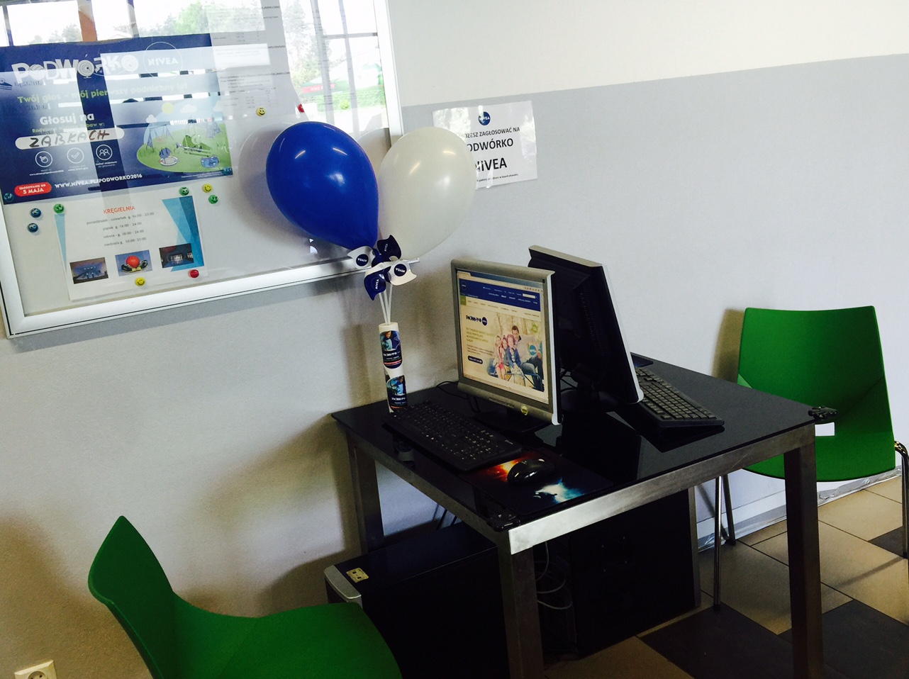 informujemy, że w holu głównym ząbkowskiego basenu ustawione są dwa stanowiska do głosowania na „Podwórko Nivea”, które może powstać tuż przy basenie w Ząbkach. Głosować należy