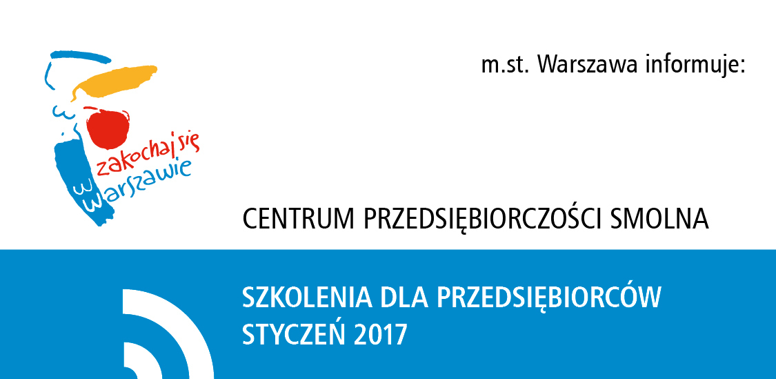 Zapraszamy na cztery szkolenia w Centrum Przedsiębiorczości Smolna, które odbędą się w styczniu 2017 . Udział w nich jest bezpłatny. Zachęcamy do udziału wszystkich przedsiębiorców.