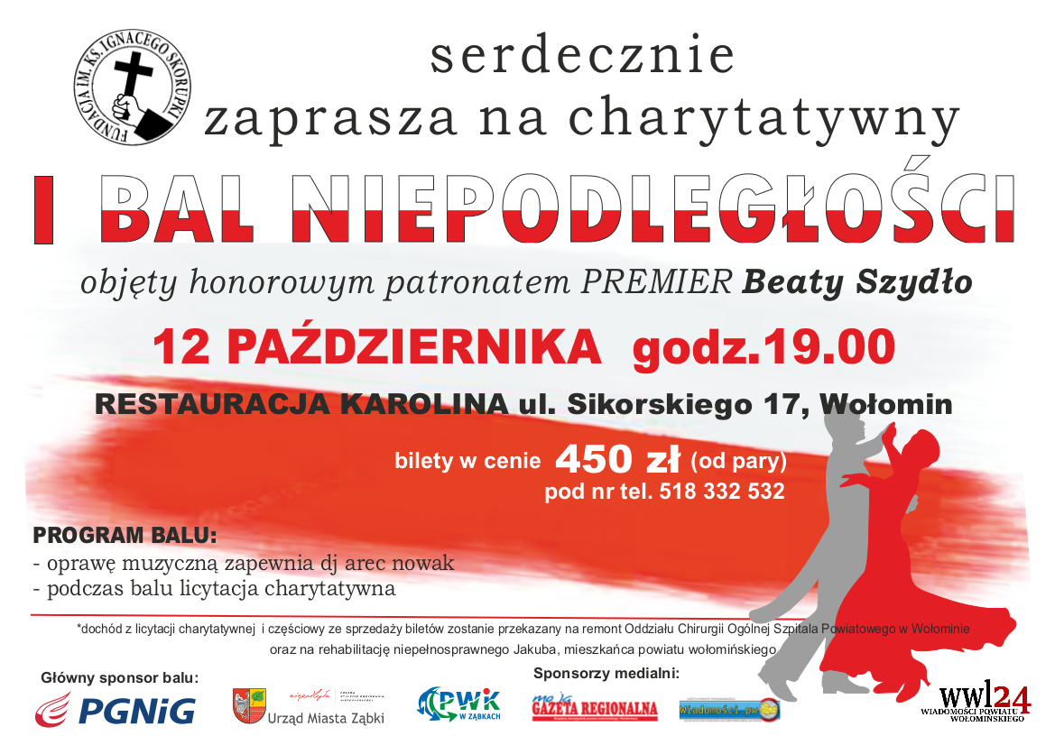 Zaproszenie na I Bal Niepodległości 12 października w Wołominie