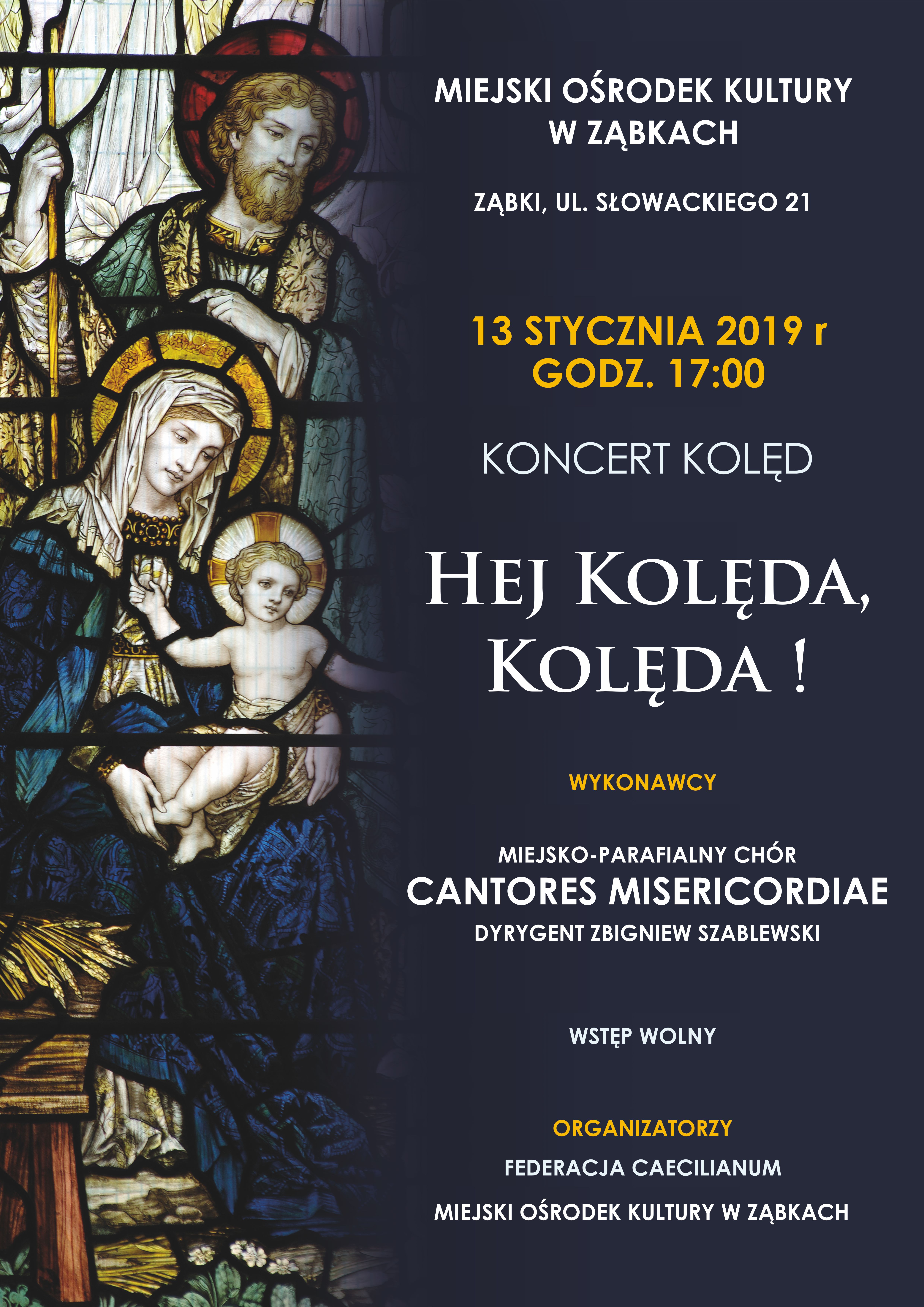 Zwyczaj śpiewania kolęd ma w naszych sercach i rodzinach szczególne miejsce. Jest to czas doświadczania radosnego spotkania drugiego człowieka w naszych rodzinach i wspólnotach. Podtrzymując bożonarodzeniowe tradycje, Proboszcz parafii Miłosierdzia Bożego w Ząbkach ks. Andrzej Kopczyński i Miejski Ośrodek Kultury w Ząbkach, zapraszają na koncerty kolędowe, które odbędą się w dniach: