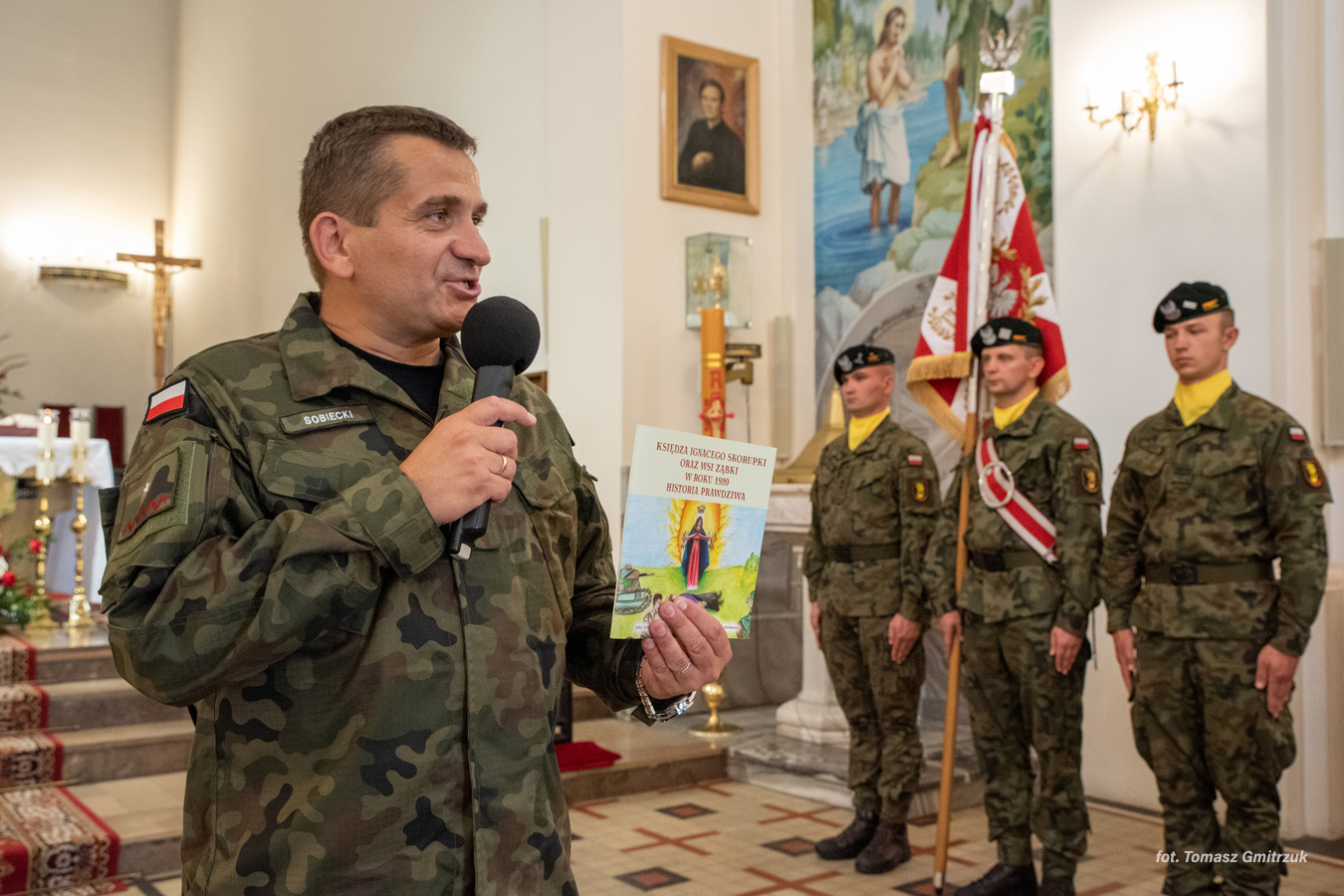 Publikacja opowiada o wydarzeniach, jakie miały miejsce w Ząbkach w dniach od 8 do 22 sierpnia 1920 roku. Do tej pory najczęściej przywoływano wyłącznie przemarsz ochotników i księdza przez Ząbki, oraz czasami podawano informację o szpitalu polowym. Zdarzało się też, że przypisywano księdzu Ignacemu odprawienie ostatniej mszy właśnie w Ząbkach. Autor publikacji, regionalista Mirosław Sobiecki, na podstawie materiałów historycznych przedstawia nieznane dotąd ogółowi, wydarzenia jakie miały miejsce tuż za linią frontu.