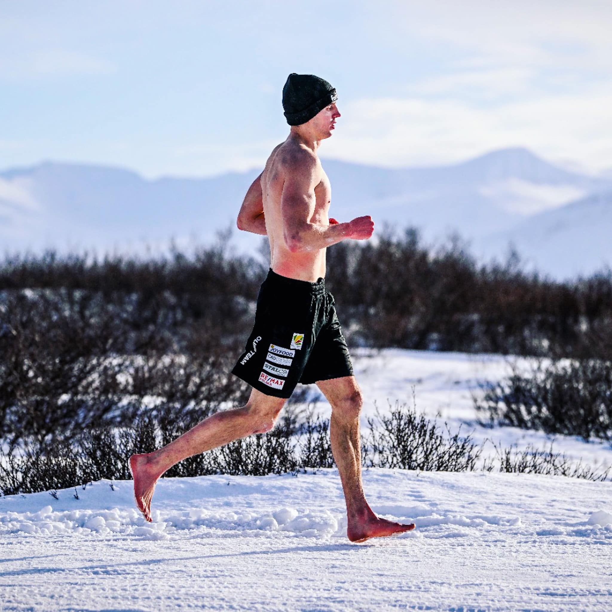 Przebiegł półmaraton boso(!) po śniegu, ubrany jedynie w czapkę i spodenki. Wyczyn sportowca honorowym patronatem objęła Pani Małgorzata Zyśk Burmistrz Miasta Ząbki.