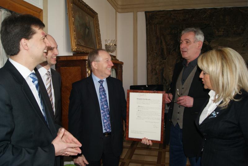 gościom dyplomy i nagrody przyznane przez znakomite i znane osobistości z całego świata m.in. królową Anglii Elżbietę II . Poinformował gości o ostatnich wielkich