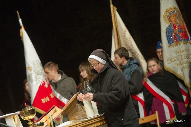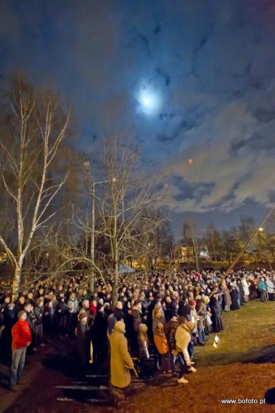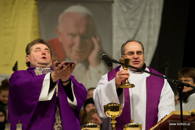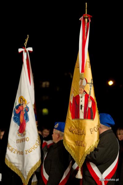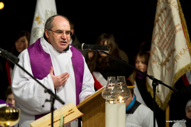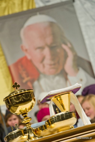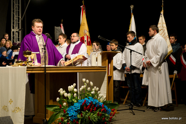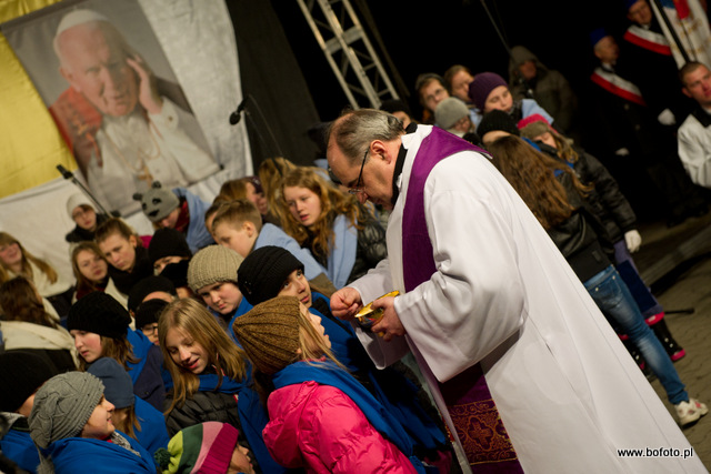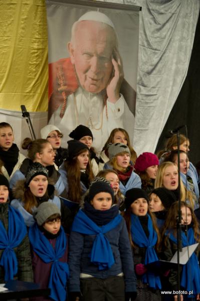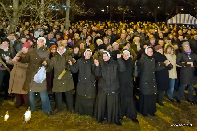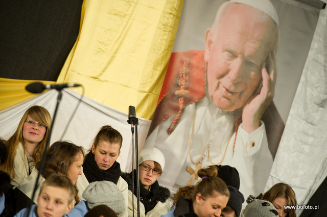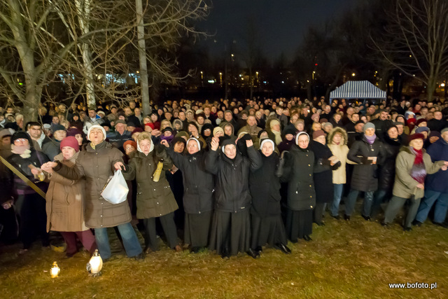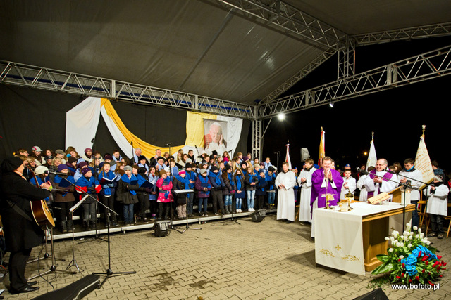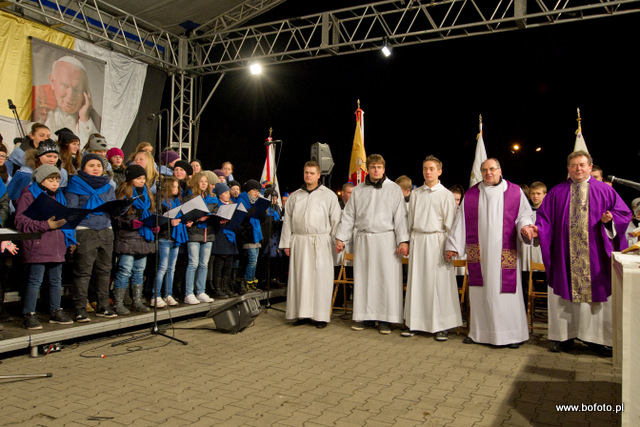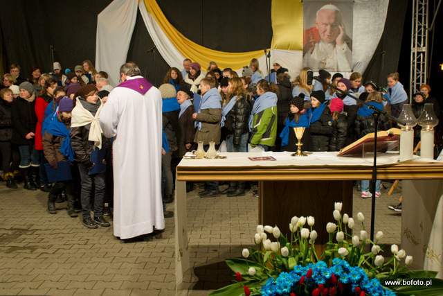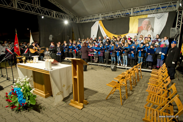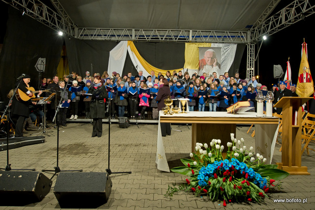 rozdając miłosierdzie Boże. Po zakończonej mszy świętej wierni zapalili znicze i wziąwszy się za ręce zaśpiewali ukochaną przez Jana Pawła II znaną wszystkim "Barkę"