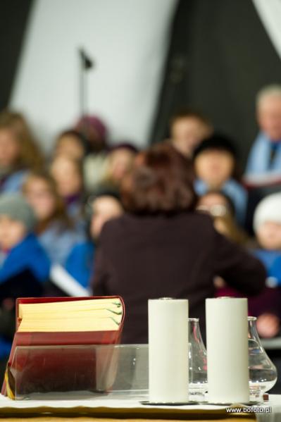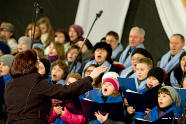 towarzyszył chór, który powstał z połączonych ząbkowskich chórów szkolnych, chóru Seniora i Miejsko Parafialnego Chóru "Cantores Misericordiae", pod batutą Elżbiety