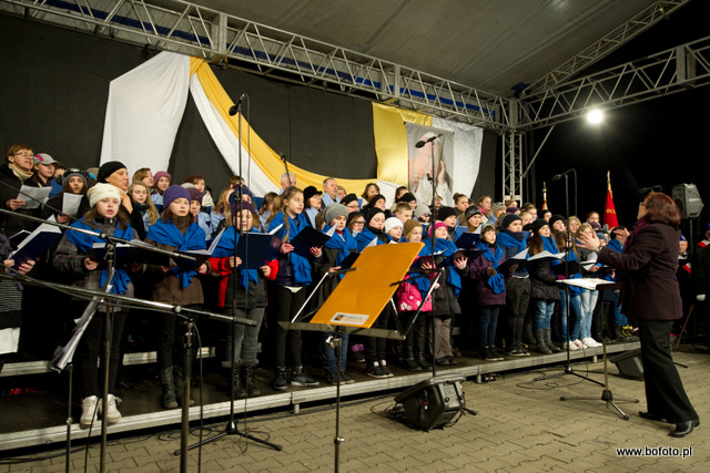 Ojczyzny i Chrystusa. Zabrzmiały pierwsze dźwięki pieśni, w interpretacji solistów: Beaty Matoga, Renaty Wnęk, Jolanty Stosio, Ireny Jaszczyk, Jadwigi Żaboklickiej,