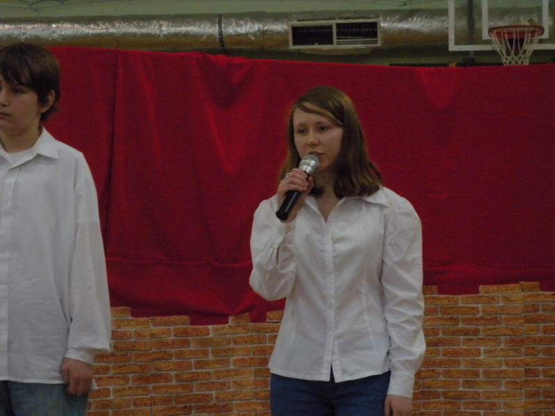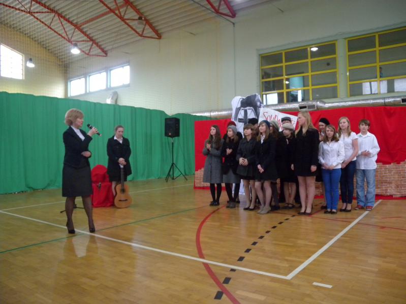 Następnie dyrektor zaprosiła wszystkich na część artystyczną przygotowaną przez uczniów gimnazjum pod kierunkiem instruktora teatralnego Miejskiego Ośrodka Kultury w