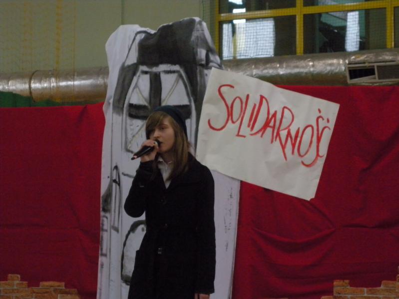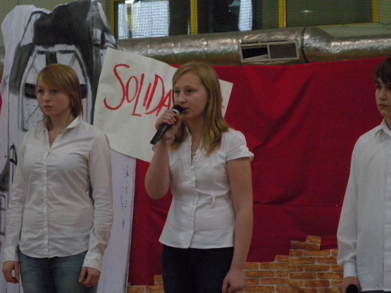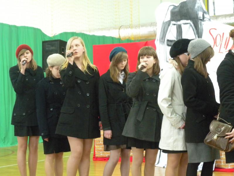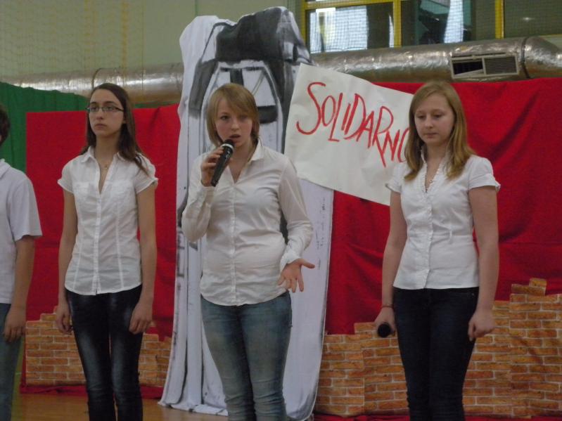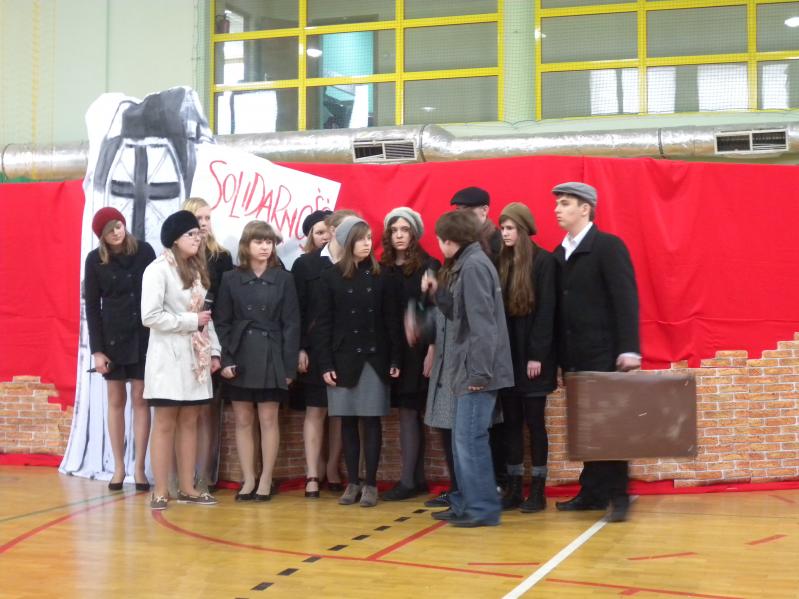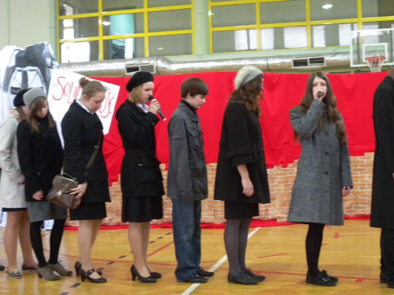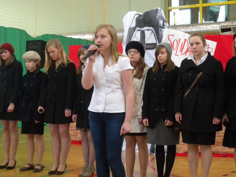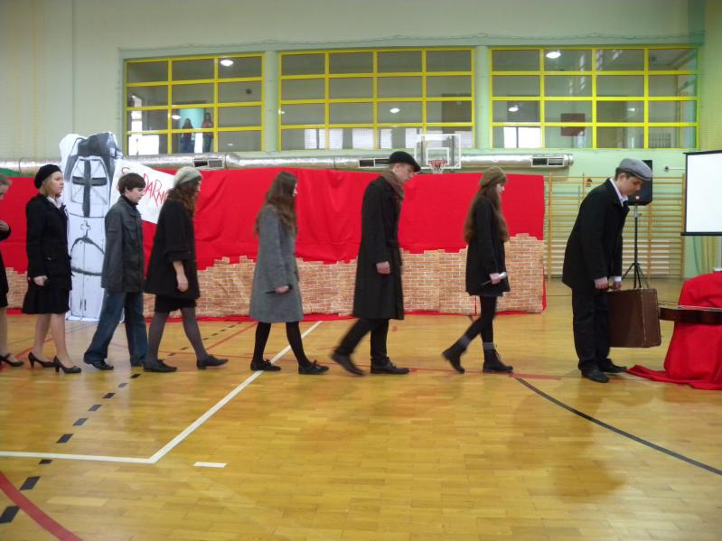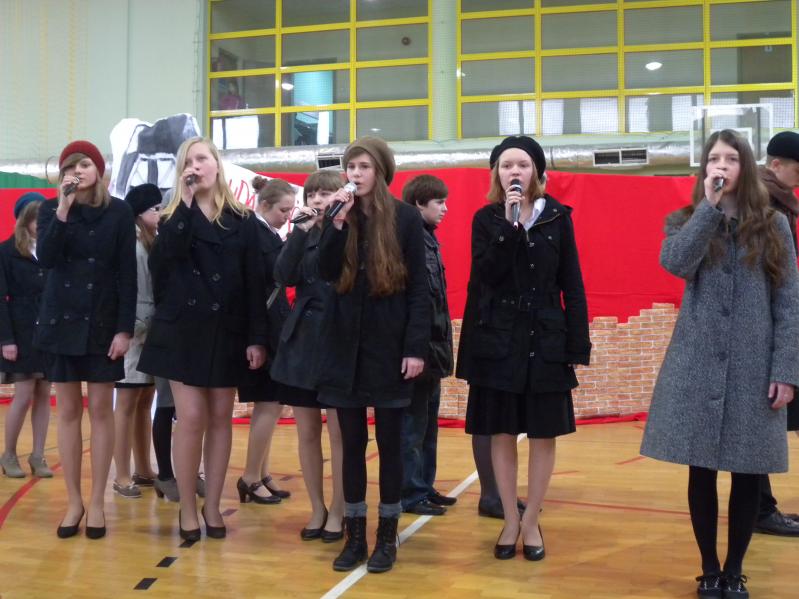 Młodzież z koła teatralnego w Miejskim Ośrodku Kultury w Ząbkach, wraz z zespołem "Forte" i uczniami z PG2 w pięknym stylu wykonała tematyczny montaż słowno –