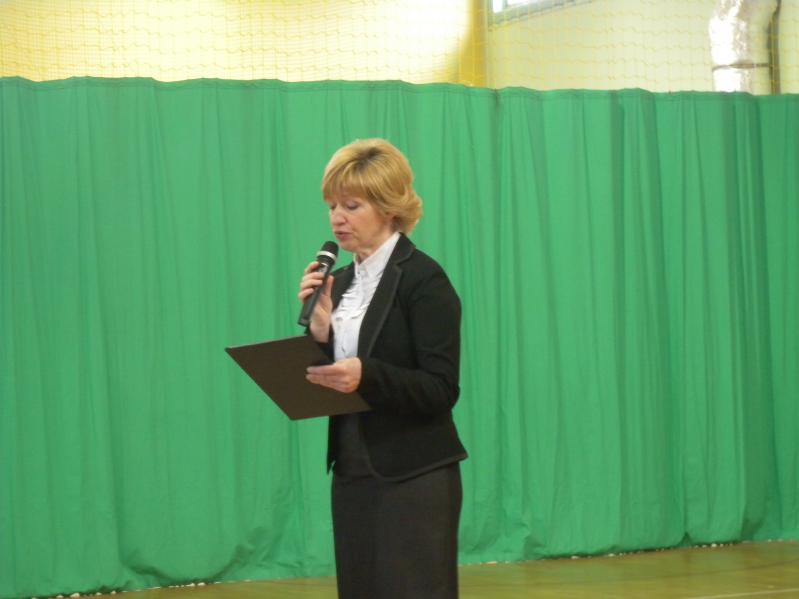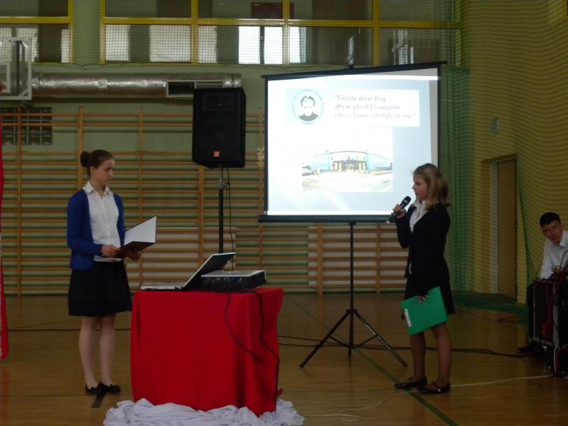 Ponieważ w związku z piątą rocznicą nadania szkole imienia został ogłoszony wśród uczniów konkurs na prezentację multimedialną "Mój patron", dyrektor Małgorzata Zyśk