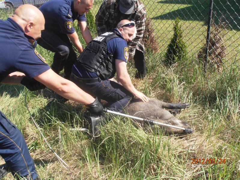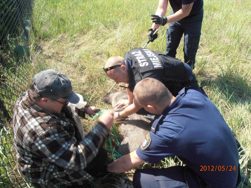 Po interwencji mieszkańca ul. Torfowej na miejscu pojawiła się policja , straż miejska oraz lekarz weterynarii.