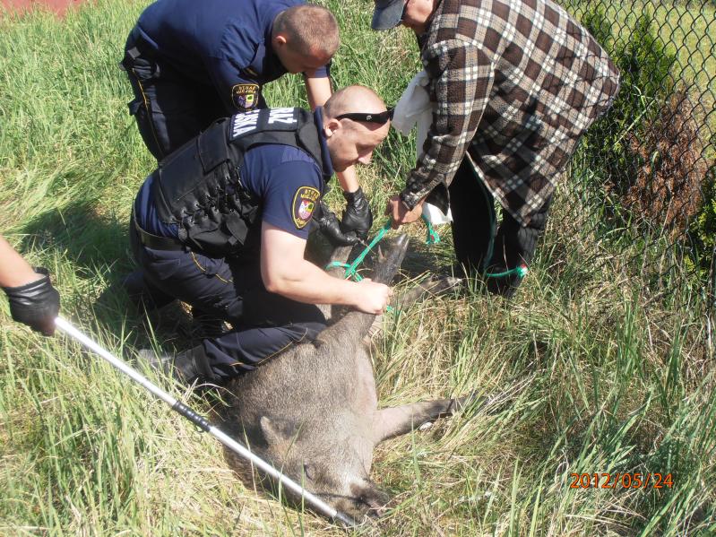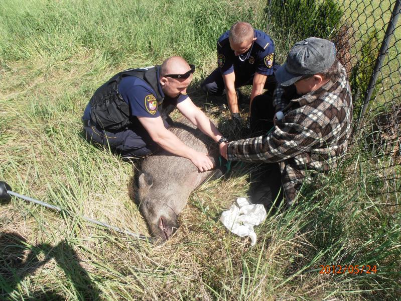 Dziki turysta ok. godz. 9.00 otrzymał zastrzyk ze środkiem nasennym, po czym został przetransportowany do Puszczy Kampinoskiej.
