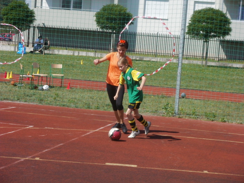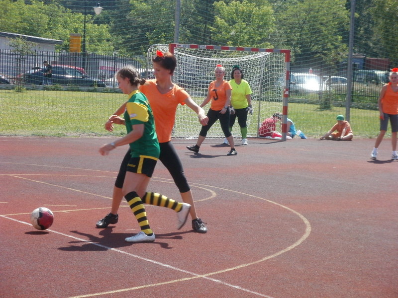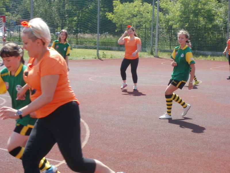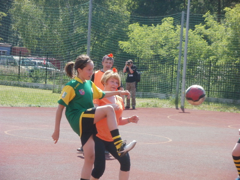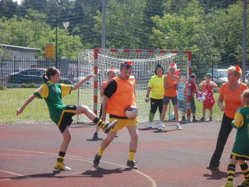 nauczycieli niesiona dopingiem uczniów i ich rodziców przystąpiła do ataku na bramkę Ząbkovii, co przyniosło skutek w postaci celnego trafienia Pani Ewy Kacprzak