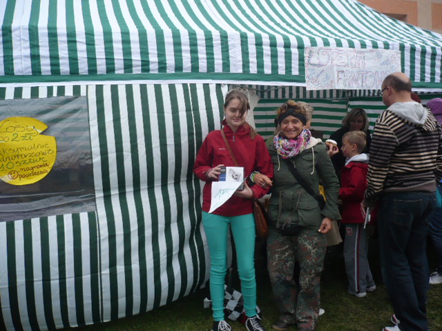 gladiatorów. Nie zabrakło także możliwości przejażdżki konno pod czujnym okiem pana Jana, właściciela koni. Jednak największym powodzeniem cieszyła się loteria. Jak co