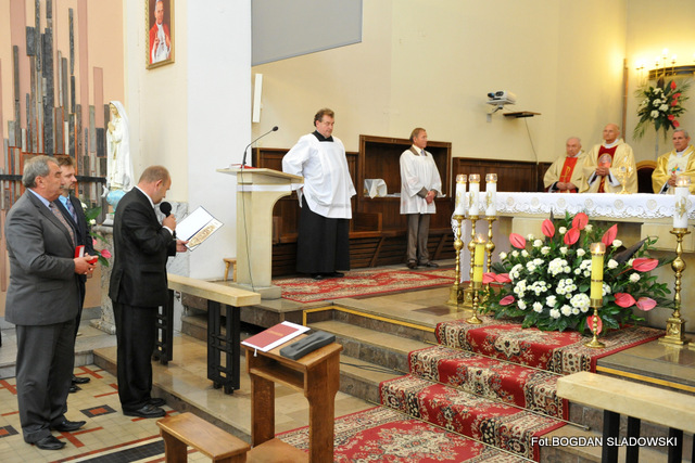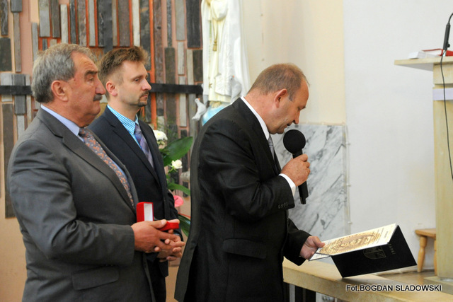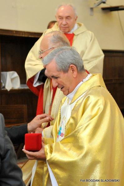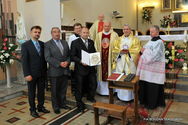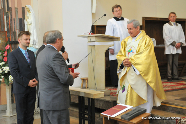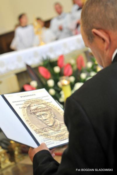 burmistrza Ząbek, wręczyła ks. Zygmuntowi Wirkowskiemu medal "Zło dobrem zwyciężaj" z wizerunkiem ks. Jerzego Popiełuszki.