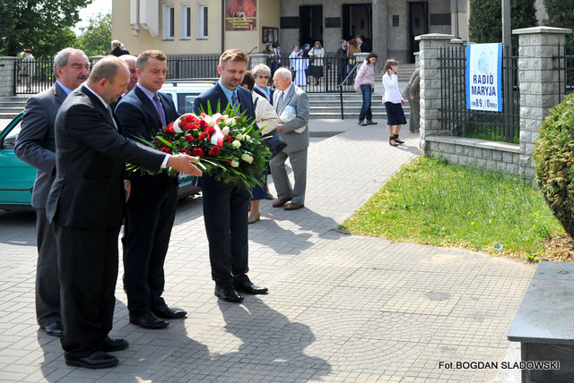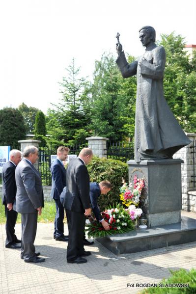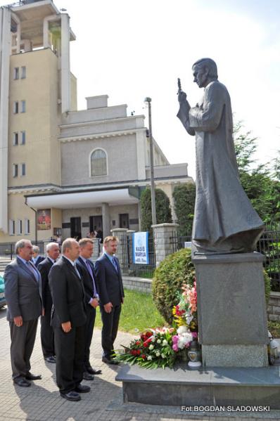 Kolejnym punktem uroczystości było złożenie kwiatów pod pomnikiem błogosławionego ks. Jerzego Popiełuszki. Kwiaty złożyła delegacja w składzie: Robert Perkowski