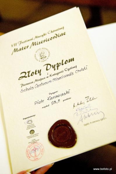 Złoty Dyplom i I miejsce – Schola Cantorum Misericordis Christi, Biała Podlaska (93,5 pkt);