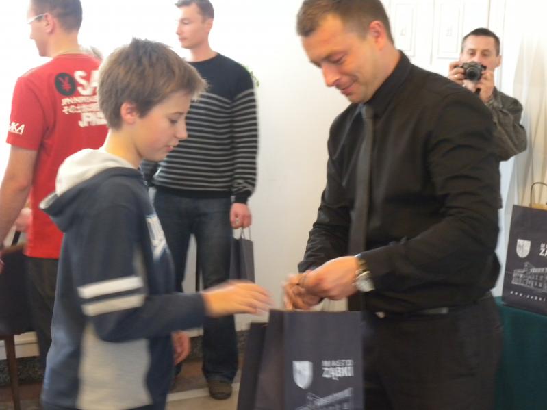 Wczoraj w gmachu Urzędu Miasta Burmistrz Ząbek Robert Perkowski wraz z Zastępcą Arturem Murawskim uroczyście wręczyli szczęśliwcom bezpłatne wejściówki na treningi naszej reprezentacji oraz drobne upominki .