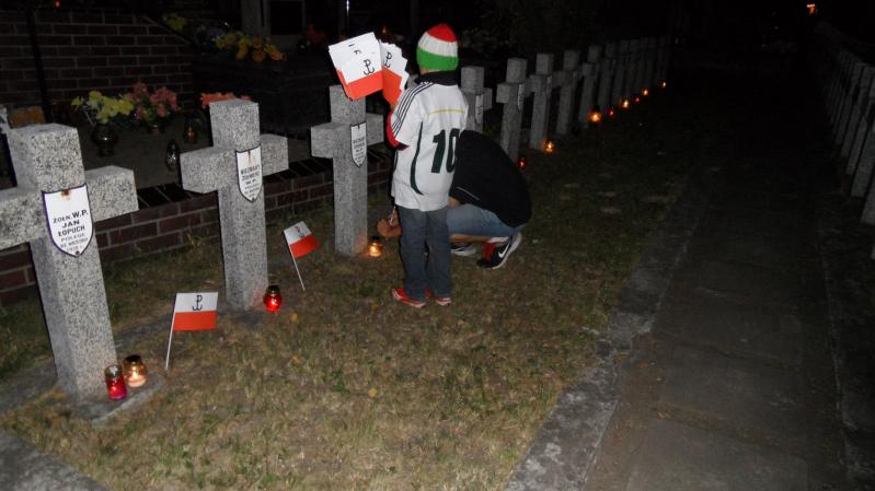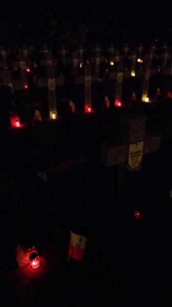 Przy każdym grobie legioniści odczytali nazwisko poległego żołnierza, zapalili znicz i wznieśli okrzyk "Cześć i chwała bohaterom".