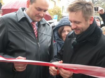 p.w.Świętej Trójcy poświęcił inwestycję, po czym przybyli na uroczystość notable przecięli wstęgę. Po tym uroczystym akcencie rozległa się muzyka, hostessy częstowały