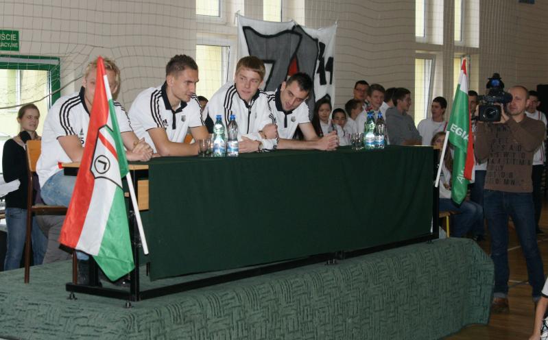 Gdy piłkarze wkroczyli na salę przy dźwiękach "Snu o Warszawie" Czesława Niemena (piosenki pełniącej rolę hymnu Legii), uczniowie przywitali ich gromkimi brawami.