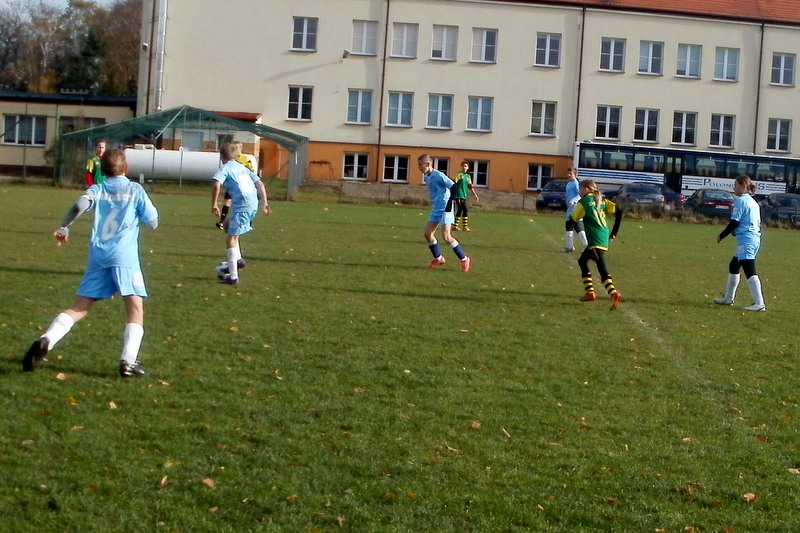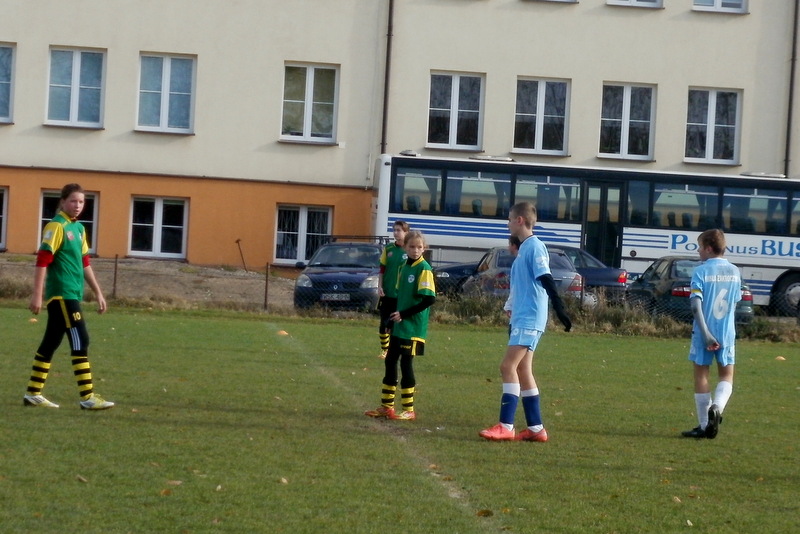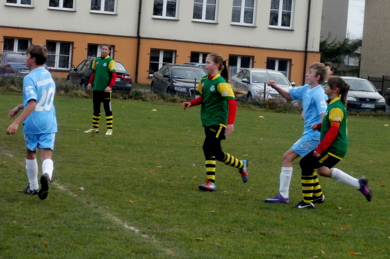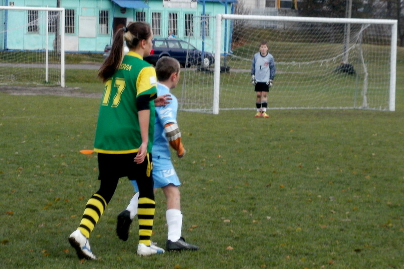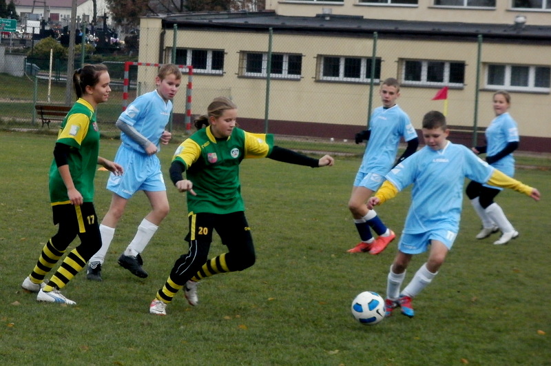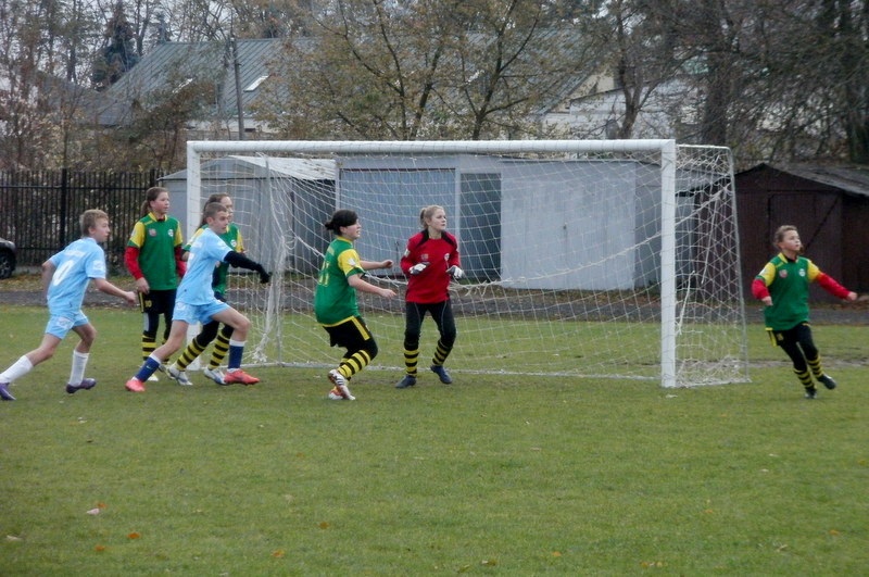 zamieszanie w polu karnym naszych przeciwników. W chwilę później błąd naszej drużyny wykorzystali chłopcy, którym udało się pokonać Paulinę. Nasze dziewczęta cały czas