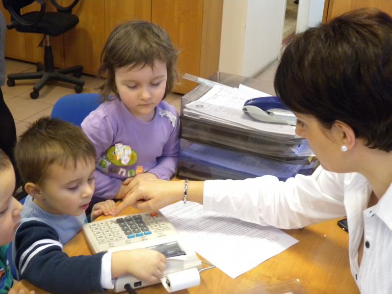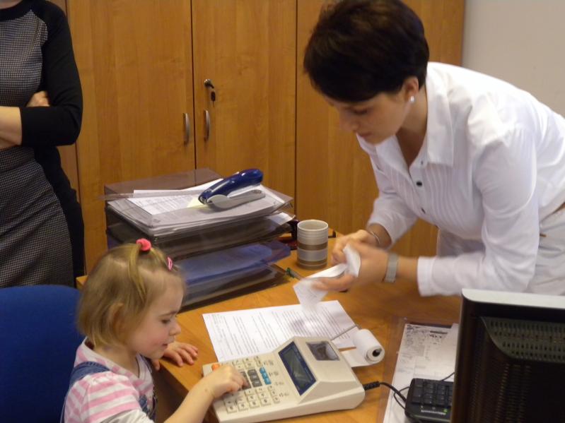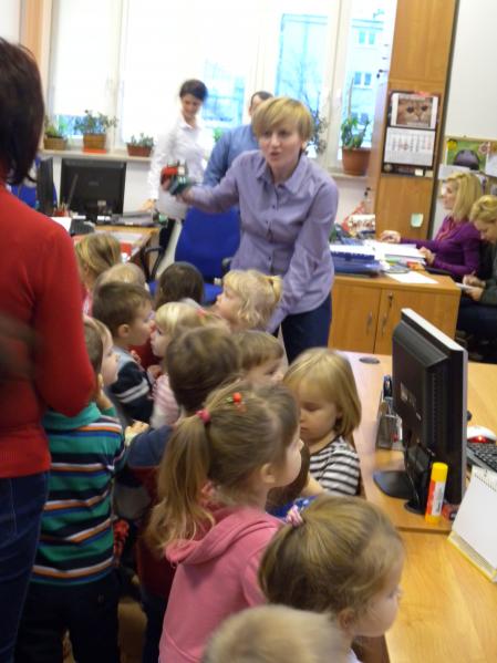 także pozostałe panie z referatu. Maluchy opuszczały finanse z plikiem zapieczętowanych kartek, które otrzymały na pamiątkę. Dzieci odwiedziły urzędowe kadry, czyli