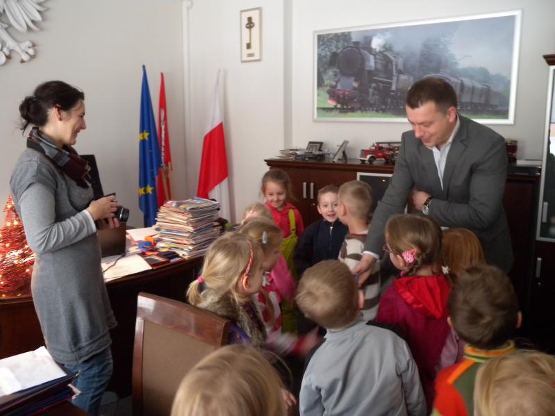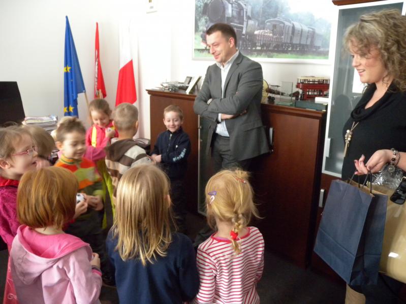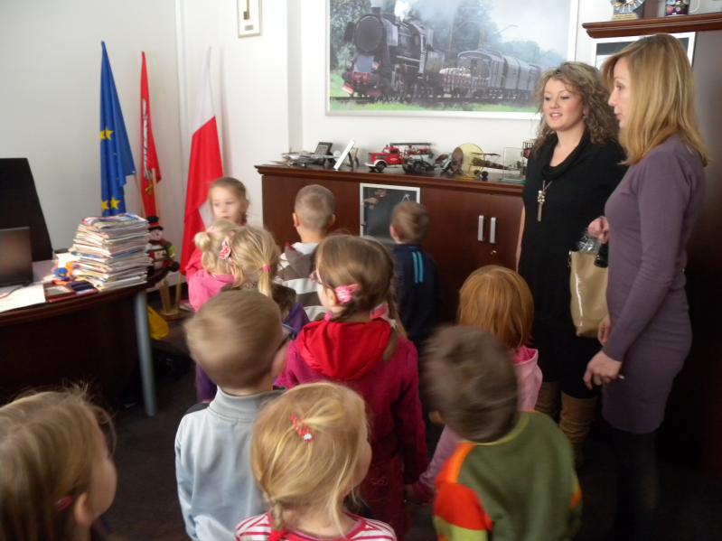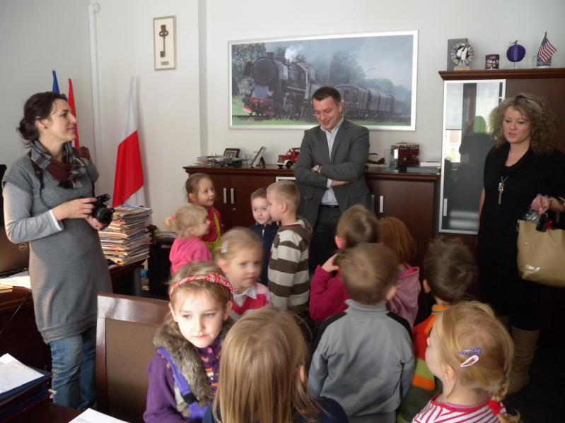 Dzieci zwiedziły gabinet burmistrza miasta, gdzie przywitał je zastępca burmistrza Artur Murawski z którym rozmawiały o ważnych sprawach miasta. Były także u pani
