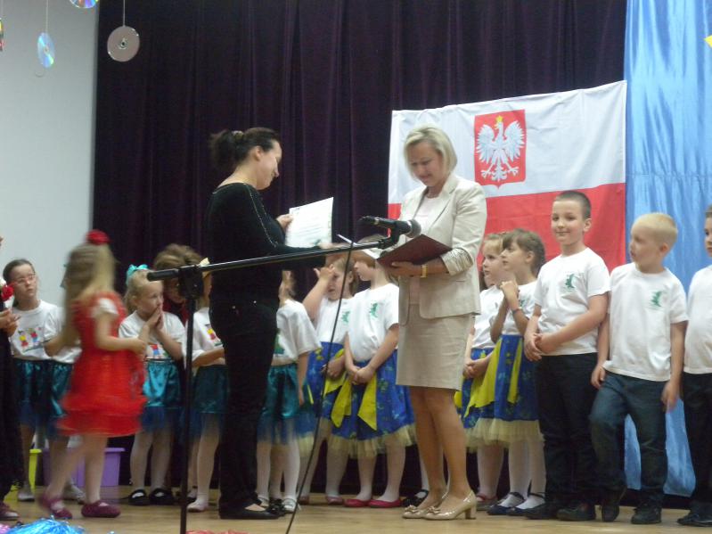 Dyrektor podziękowała wszystkim wpierającym przedszkole: burmistrzowi, zastępcy burmistrza,radnym i urzędnikom miejskim, kadrze pedagogicznej i radzie rodziców oraz
