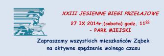 Zapraszamy wszystkich mieszkańców Ząbek na aktywne spędzenie wolnego czasu. XXIII JESIENNE BIEGI PRZEŁAJOWE - 27 IX 2014r. (sobota) godz. 11:00