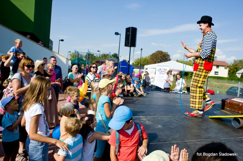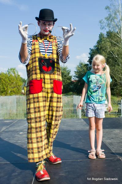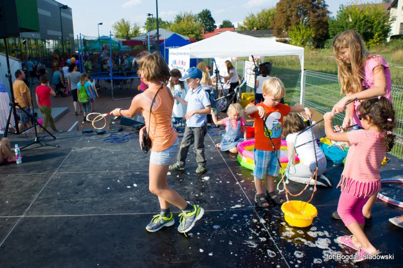 atrakcje, takie jak występy klauna iluzjonisty, pokaz puszczania ogromnych baniek mydlanych, występy dzieci z sekcji Miejskiego Ośrodka Kultury i Miejskiego Ośrodka