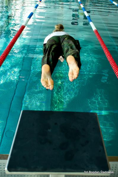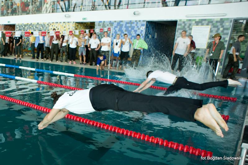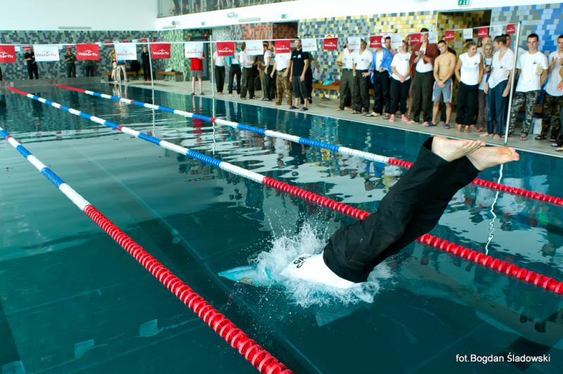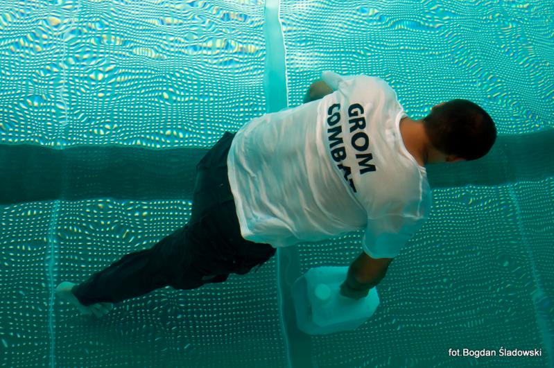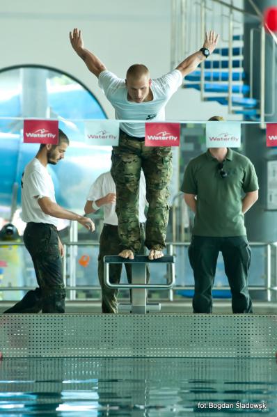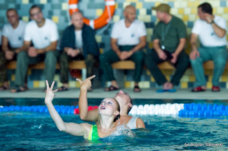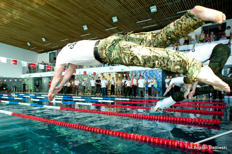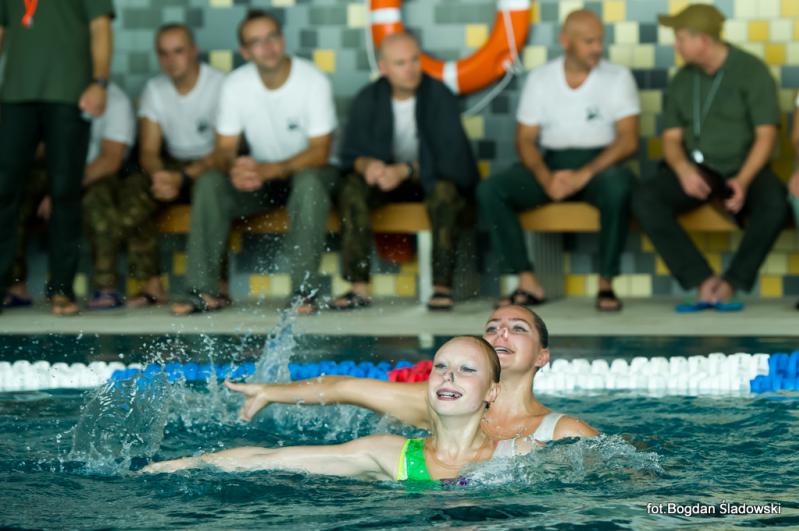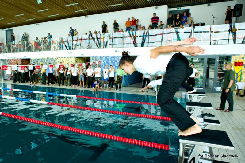 Bardzo widowiskowym punktem programu były zawody pływackie żołnierzy elitarnej jednostki wojskowej "Grom", które odbyły się na basenie. Na powietrzu można było