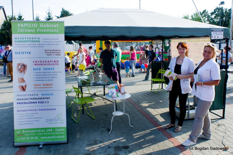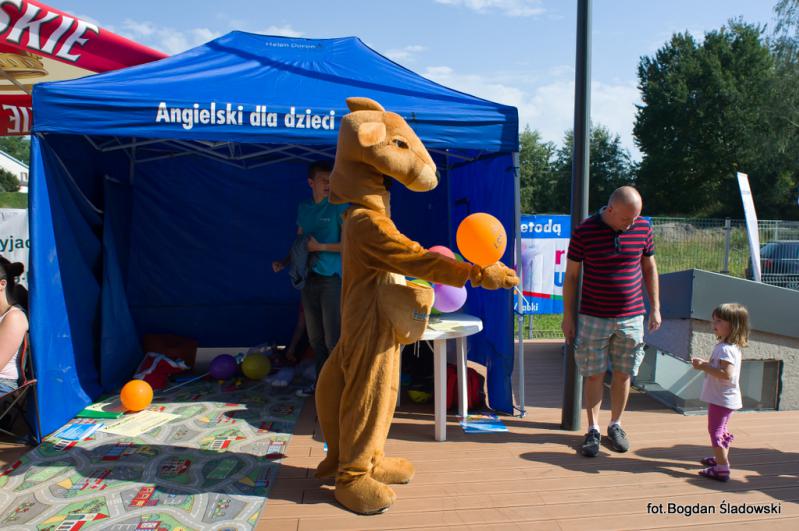 Wokół basenu stały stoiska ze słodkościami, a także stoiska promocyjne m.in. Towarzystwa Przyjaciół Ząbek, Miejskiego Ośrodka Kultury oraz Steny Recykling z Warszawy i