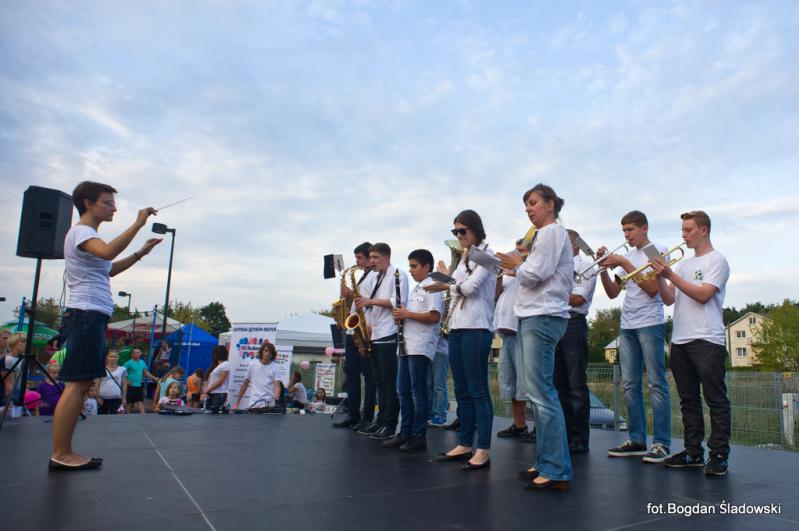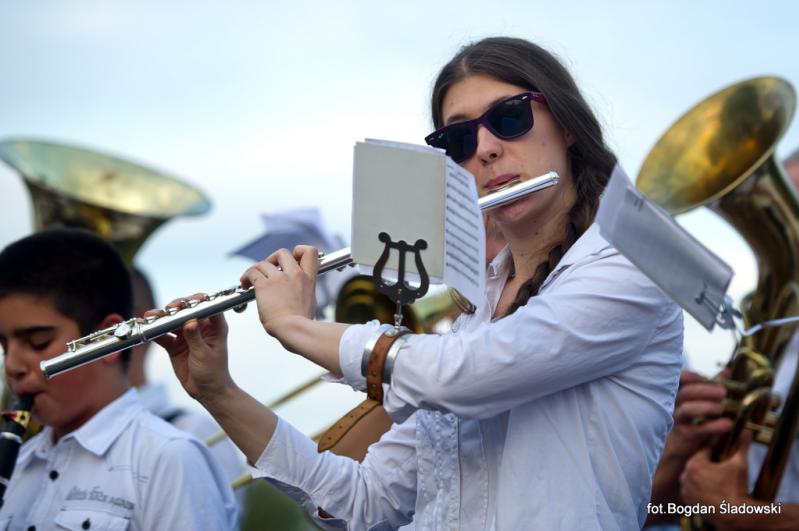 Tuż przed godziną 18.00, Miejska Orkiestra Dęta pod kierunkiem Barbary Hijewskiej przeprowadziła publiczność pod dużą scenę, na której po występach wokalnych i
