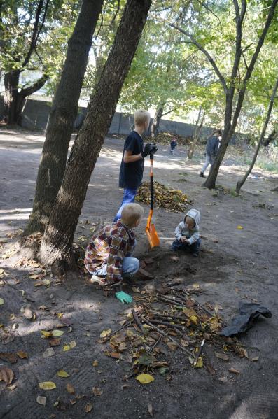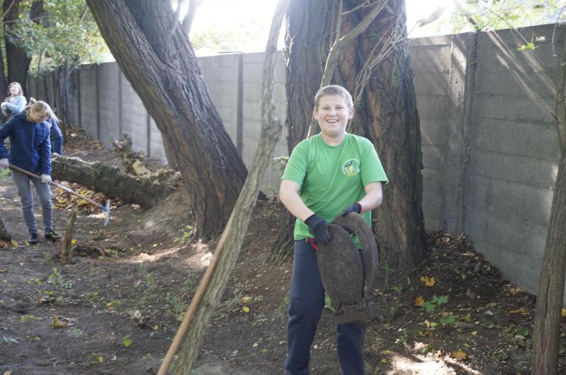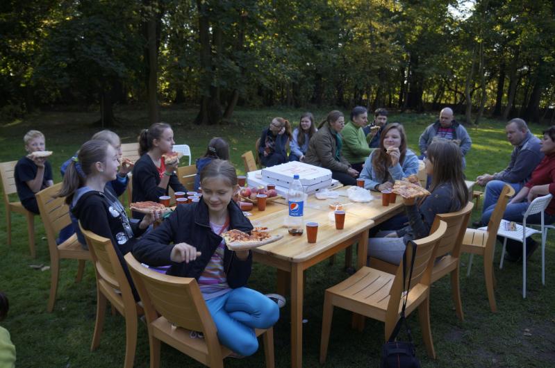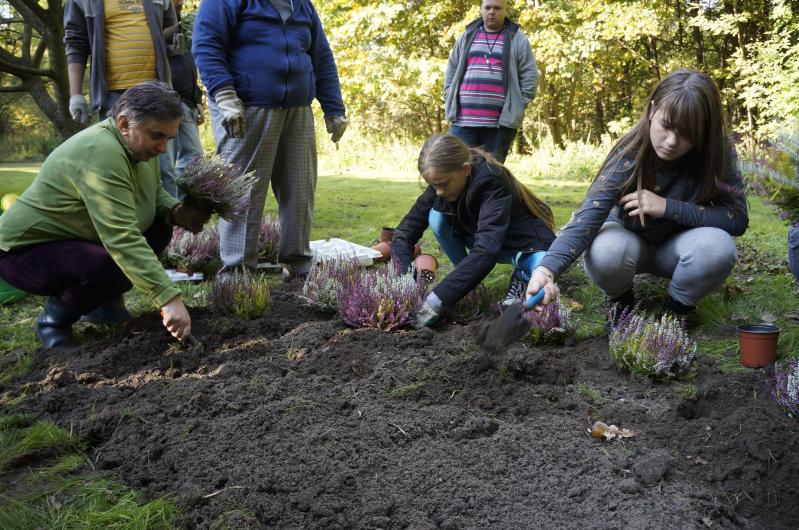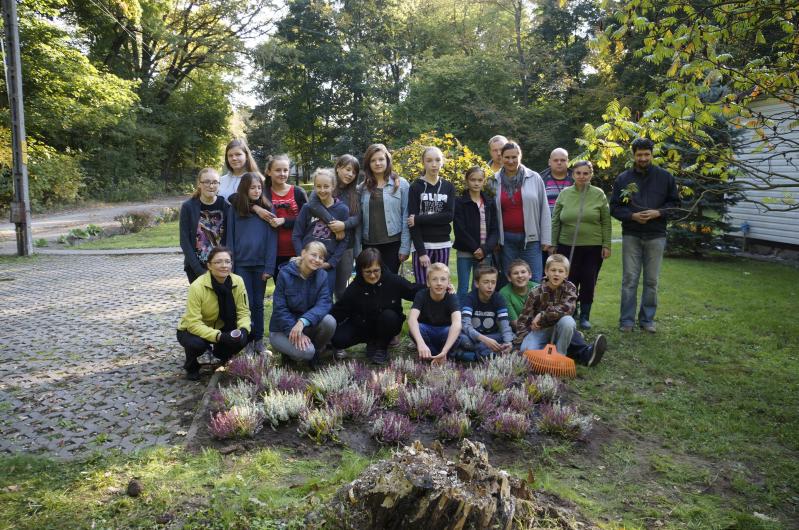 naprawdę pokaźnych rozmiarów pizze. Następnie grabiliśmy liście i przygotowaliśmy teren pod "wrzosowy dywan". Na zakończenie każdy chętny miał okazję zasadzić swoją