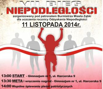 godz. 13.00 - VII Bieg Niepodległości. Start i meta z pod Publicznym Gimnazjum nr 1 w Ząbkach im. Jana Pawła II (ul. Harcerska 9);