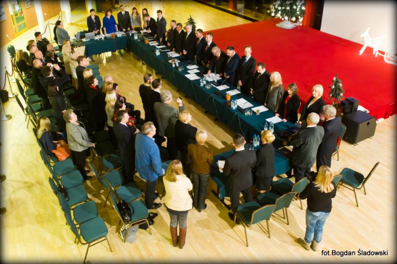 Wyborczej. Następnie radni złożyli ślubowanie, po uprzednim odczytaniu ich nazwisk (skład rady poniżej) przez najmłodszego radnego - Grzegorza Siwka. Rota ślubowania