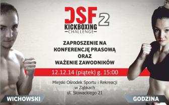 Organizator gali półfinałowej DSF Kickboxing Challenge w Ząbkach, która odbędzie się 13-go grudnia w hali sportowej Gimnazjum nr 2 w Ząbkach, pragnie zaprosić wszystkie media na poprzedzającą to wydarzenie Konferencję Prasową połączoną z Oficjalnym Ważeniem Zawodników, która rozpocznie się w dniu 12-go grudnia w Miejskim Ośrodku Sportu i Rekreacji w Ząbkach przy ulicy Słowackiego 21 o godz. 15:00.