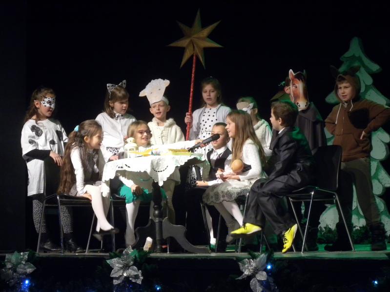 przedstawienia "Betlejemska gwiazda", z którym zawitaliśmy na miejsce 8 grudnia 2014 r. Nad przygotowaniem przedstawienia czuwały wychowawczynie klas III c pp. Teresa