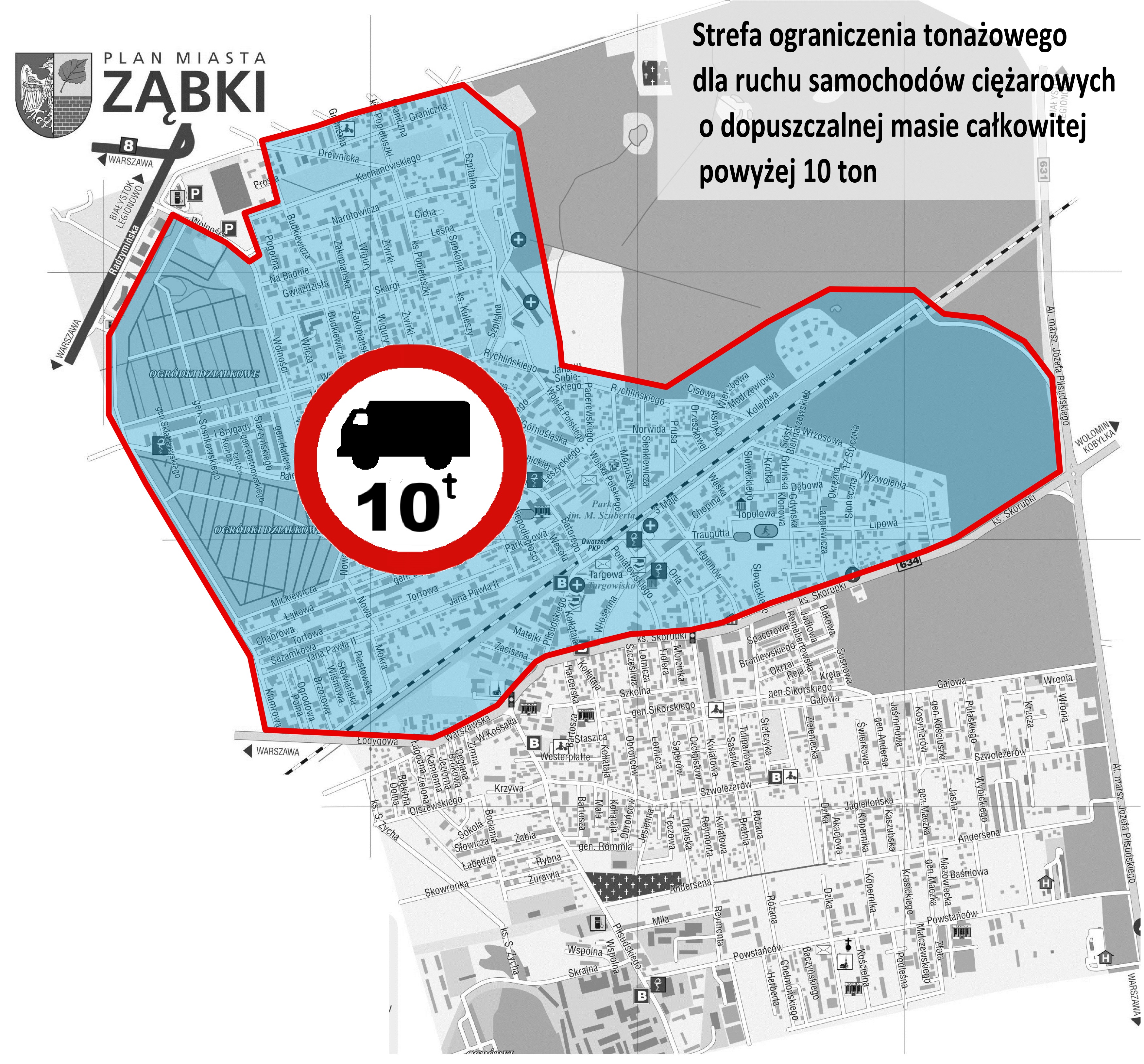 Referat Dróg i Komunikacji Miejskiej Urzędu Miasta Ząbki informuję, że w dniu 17 listopada 2014 r. Marszałek Województwa Mazowieckiego dokonał na wniosek Burmistrza Miasta Ząbki zatwierdzenia projektu stałej organizacji ruchu drogowego, dający możliwość wprowadzenia na północnej części miasta Ząbki, ograniczenia wjazdu pojazdów ciężarowych o dopuszczalnej masie całkowitej ponad 10 ton. Ograniczenie nie dotyczy autobusów.
