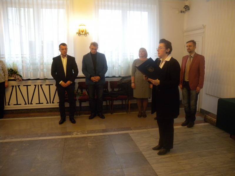 Podczas uroczystości nauczyciele, którzy otrzymali akt nadania stopnia awansu zawodowego nauczyciela na stopień nauczyciela mianowanego złożyli ślubowanie według