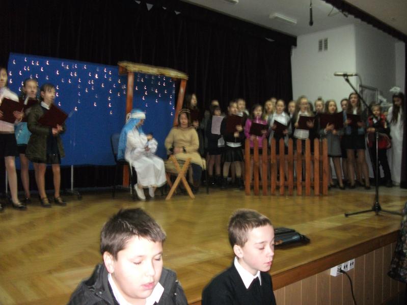 Dzieci w Ząbkach, zaś w dolnym kościele Miłosierdzia Bożego - "Jasełka" na wesoło przedstawiła grupa ok. 70-ciu uczniów ze Szkoły Podstawowej nr 2 w Ząbkach.