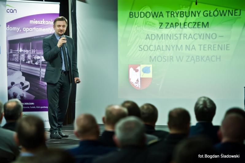 Burmistrz przedstawił zgromadzonym prezentację dotyczącą inwestycji sportowych w Ząbkach, zarówno tych zrealizowanych jak i przyszłych. Trzeba przyznać, że prezentacja
