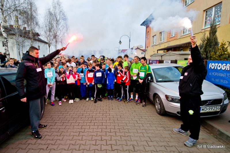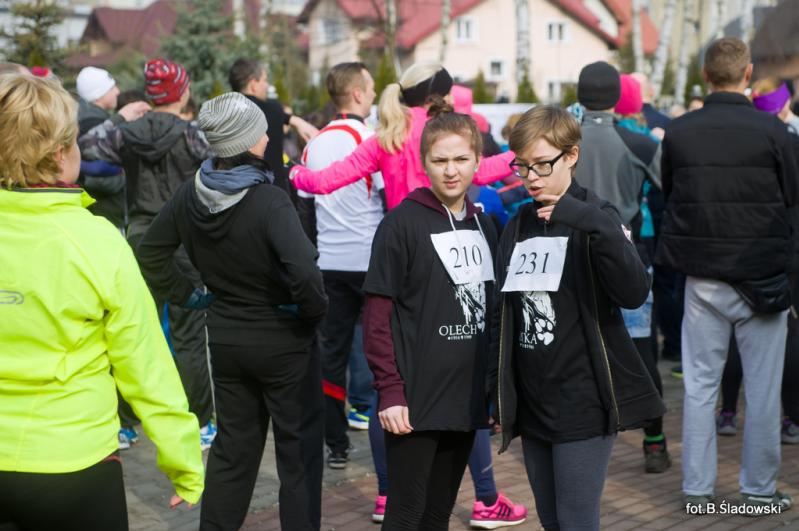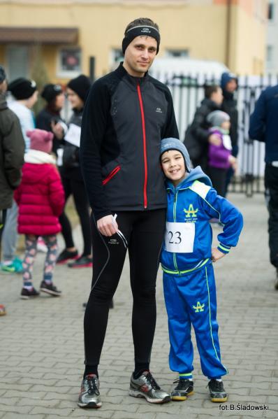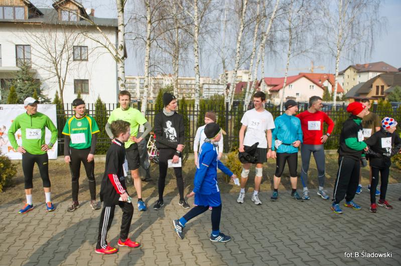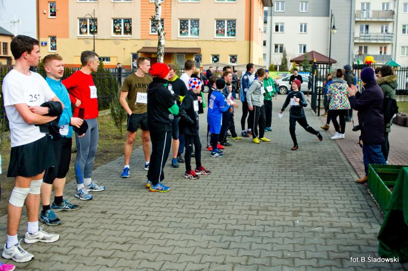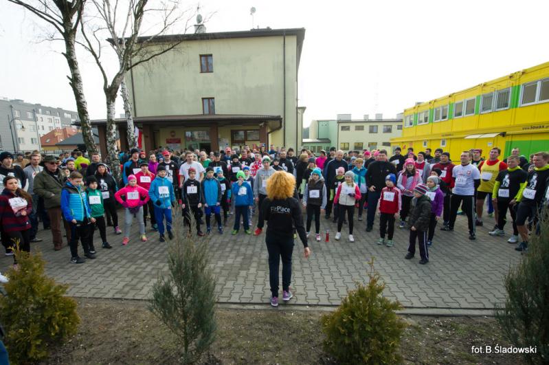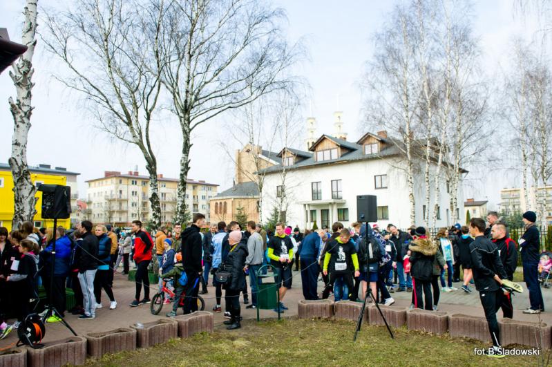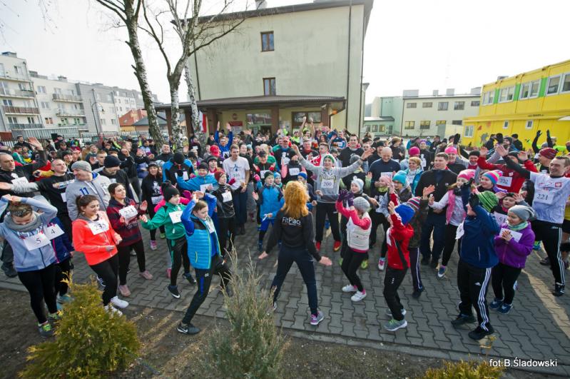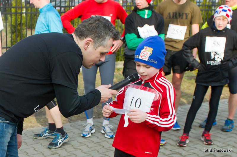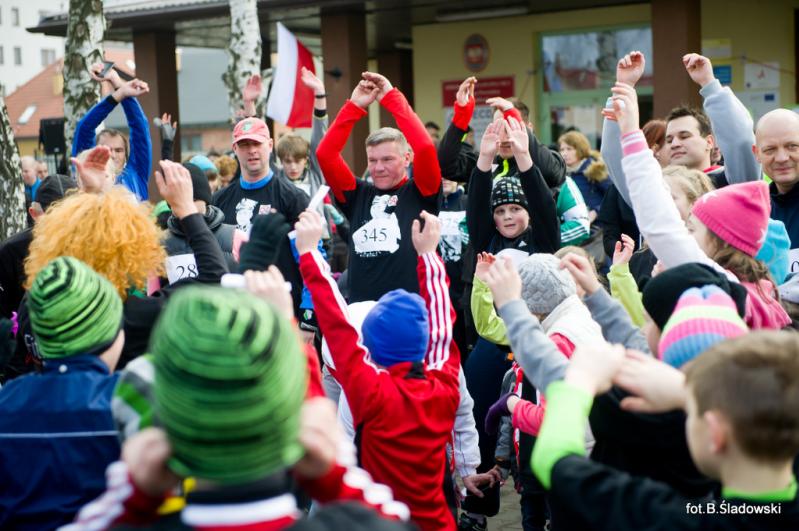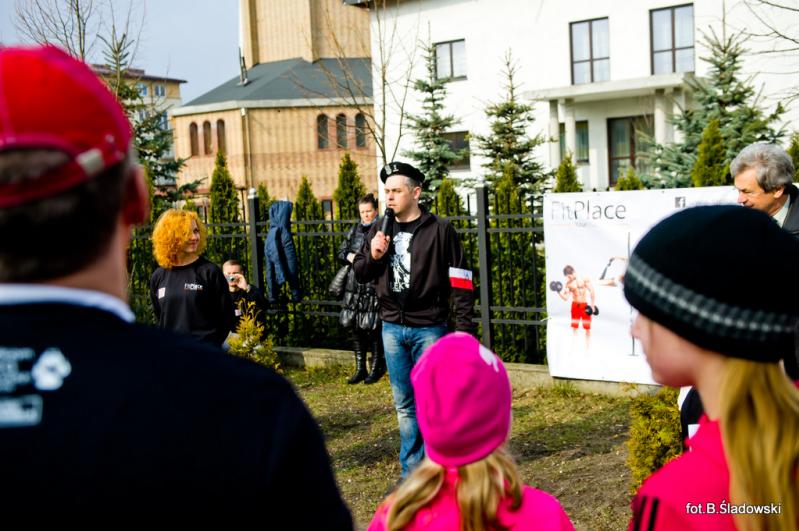 Biegi zaplanowane zostały na godzinę 12:00. Dziesięć minut przed startem instruktorka z Klubu Fit Place przeprowadziła rozgrzewkę. Potem Pan Dominik Manowski jeden z