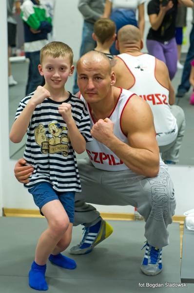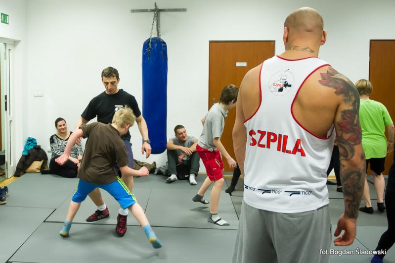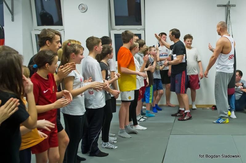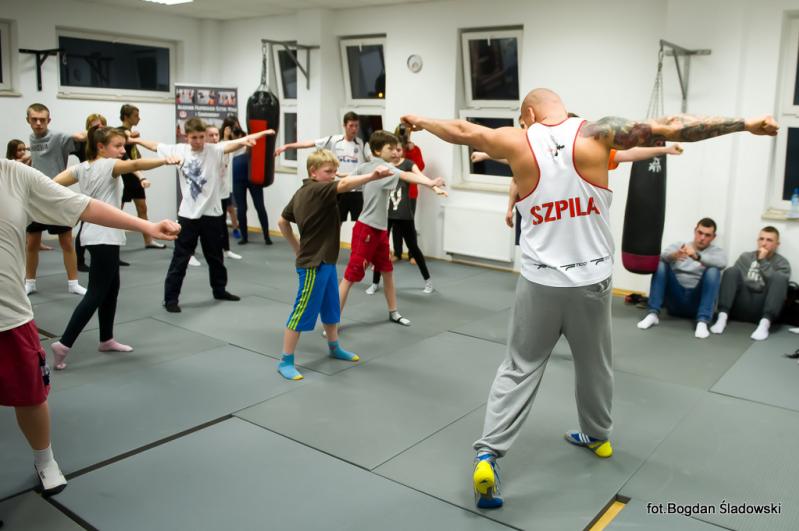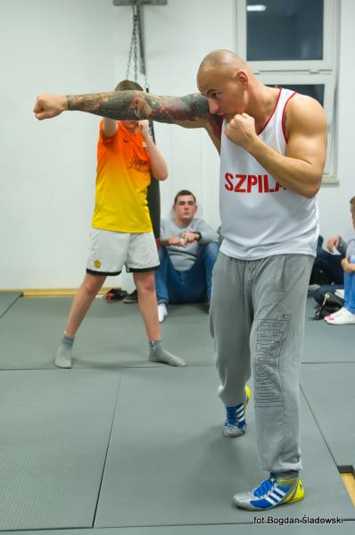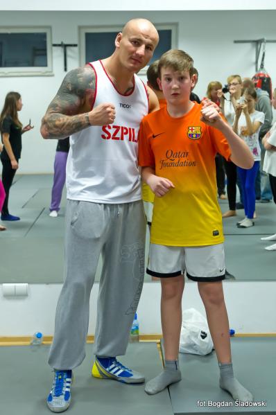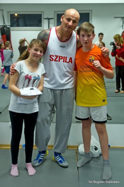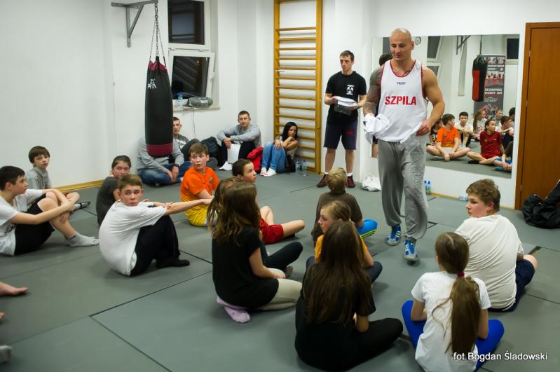 Artur Szpilka pojawił się w MOSiR tuż przed godz. 18.00 i przy przygotowanym przez dyrekcję stoliku, rozdawał pierwsze autografy. Po chwili rozpoczął się trening bokserski, podczas którego było dużo zabawy i śmiechu, ale także poważne, merytoryczne podstawy boksu przekazywane przez mistrza. Czas biegł jak szalony i nieubłaganie zbliżał się koniec treningu. Pod koniec zajęć Artur Szpilka rozdał pięć koszulek "Team Szpila" dla najbardziej wyróżniających się młodych zawodników. Wpatrzonym w niego z zachwytem dzieciakom opowiedział o swoim życiu, mówiąc, że przez determinację oraz ciężką pracę można osiągnąć sukces i spełniać swoje marzenia. Zachęcił do uprawiania sportu, jednocześnie zwracając uwagę na pułapki wynikające z niewłaściwych postaw społecznych i do czego one mogą doprowadzić. Wielką radość sprawiły podopiecznym wspólne zdjęcia. Finał spotkania zaszczycił swoją obecnością burmistrz Ząbek Robert Perkowski. Podpisywanie autografów i wspólne zdjęcia nie miały końca. Trwały prawie godzinę.